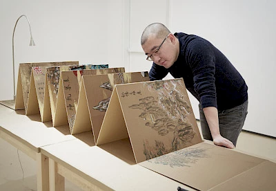 Considered one of China’s most talented rising young artists, Sun Xun’s artistic practice combines meticulous craftsmanship with stylistic experimentation not limited to any one medium. Blurring the lines between drawing, painting, animation and installation, his work incorporates a wide array of materials. Painting, woodcuts, traditional Chinese ink and charcoal drawings are often combined to create the foundation of expressionistic, stop-motion animated films. These films are then presented in immersive settings, creating a theatre of memory for the visitor, filled with realistic and fantastical iconography.