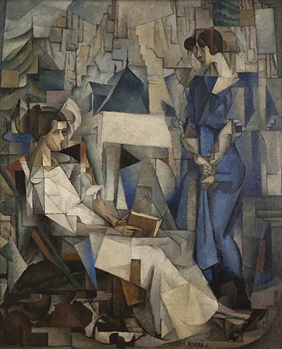 Rivera’s most important Cubist painting—and one of his largest—Dos Mujeres was first exhibited in 1914 at the Société des Artistes Indépendents. There, it received extensive coverage in the press, hailing Rivera as the “Champion of Cubism.”