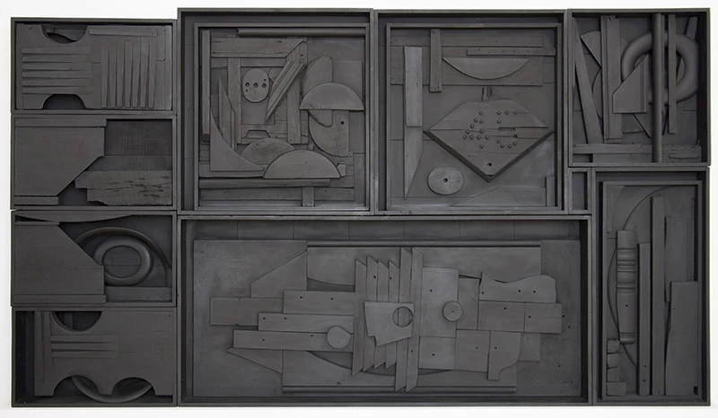 In this exhibition, each woman’s story amplifies the other’s. In their artworks—which reveal the two as fellow travelers in the legacy of Cubism, Surrealism, and Constructivism—assemblage is an important unifying theme. Works include found object sculptures, mixed media reliefs, collage, painting, jewelry, and clothing, including some of Nevelson’s most iconic fashion statements.
