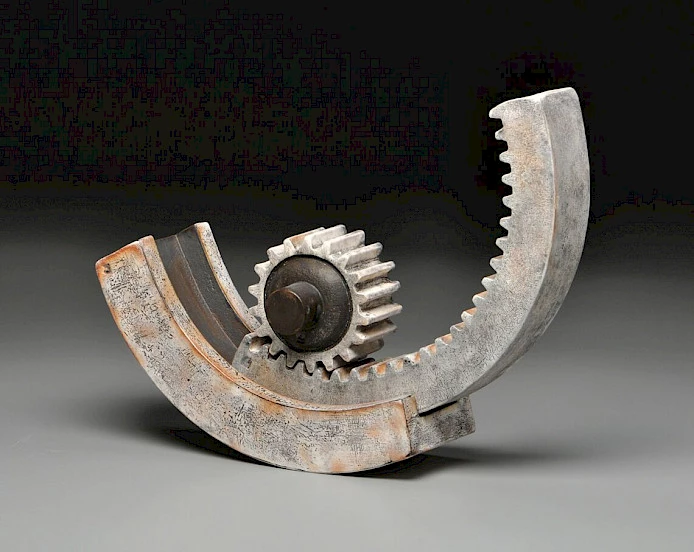 Kenneth Baskin, Mechanical Movements “Balance,” 2019, soda-fired stoneware, 15 x 19 x 6 inches