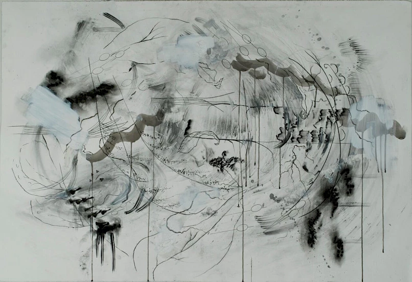 Julie Darling, Obscurity Often Brings Safety, 2018, charcoal, graphite, ink, gouache, gesso on Stonehenge, 30 x 44 inches