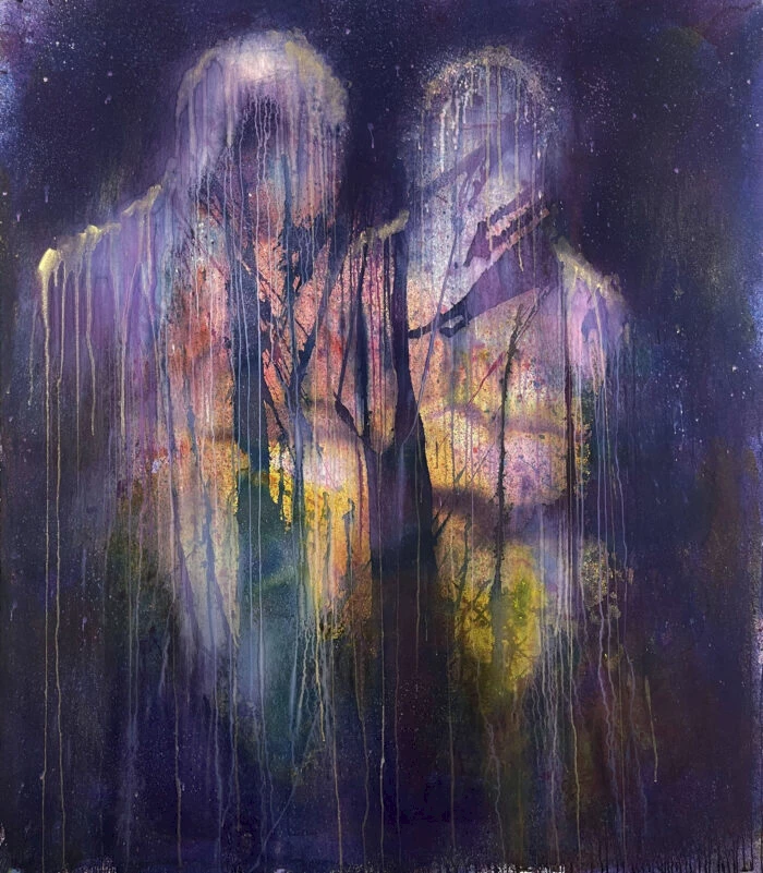 Working in painting, drawing, photography, video, installation and performance, McGrigg investigates themes of blackness, spirituality and space. Her recent series of paintings depicts a metaphysical plane she’s dubbed “the Ether”—a zone between the realm of the living and the domain where souls reside. Her work—made by dripping dyes on a canvas or paper—visually manifests this in-between space.