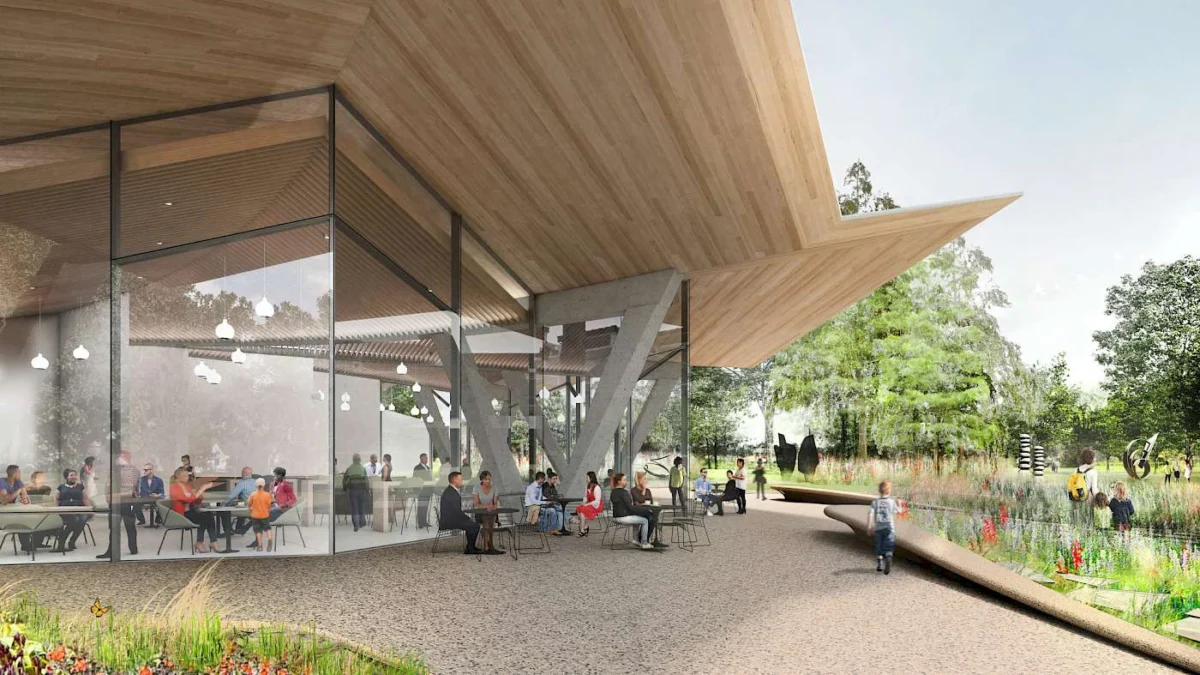 By cutting through existing spaces, Studio Gang was able to create a new central spine through the building that opens toward downtown Little Rock and historic MacArthur Park, creating new opportunities for visibility and access. The new building will be situated within 11 acres of public landscape designed by SCAPE and inspired by the native ecologies of Arkansas.