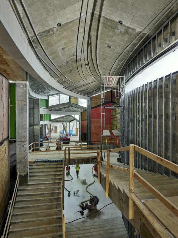 Alongside new construction, Studio Gang’s design reuses and adapts various previous structures and materials, while renovating existing spaces to support the Museum’s programming aspirations. The most carbon-intensive elements of the building have been kept intact, and back-of-house, staff offices, and art storage have been reconfigured to streamline the visitor experience while creating state-of-the art conditions for art storage, transportation, and display. These renovated spaces, connected through new construction, improve the Museum’s programming capacity, allowing for more art to be displayed, more classes to be taught, and more events for public engagement.