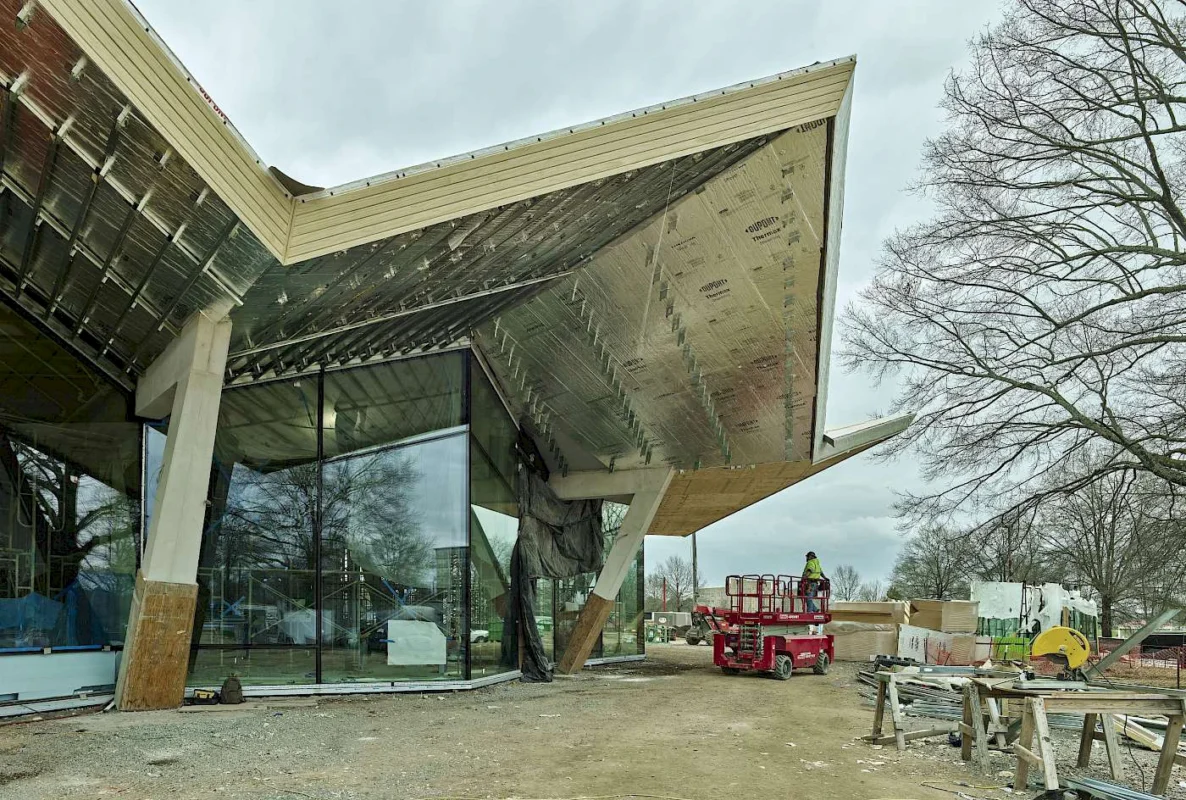 When interviewed for the project in 2016, Studio Gang stood out with their vision for “a museum in a park,” recognizing – even in the earliest stages of the project – that clarified circulation throughout the building and into the park would help the Museum’s mission continue to flourish. As the Museum’s collection and programming grew over the years, the building underwent additions and renovations, with support from the community, to increase the institution’s programming and exhibition capacities. By the 2010s, the sprawling complex was closed off from the neighborhood and the park and no longer able to meet the needs of its growing audiences, exhibitions, and programming aspirations. When the design for the new building began, Studio Gang studied the disparate structural, heating, and material systems of the AMFA’s additions as well as the collection itself, interviewing curators and staff to better understand the movement of people and art through the building over time.