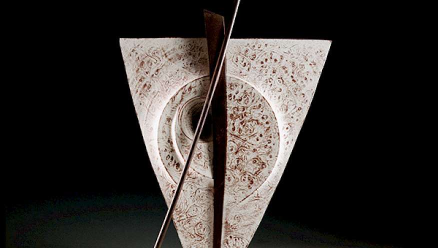 Risa HricovksyRisa Hricovsky (Toledo, Ohio, 1985 - ), Hopes of Harmony, 2023, pigmented porcelain, 33 x 33 x 3 in., Courtesy of the artist.